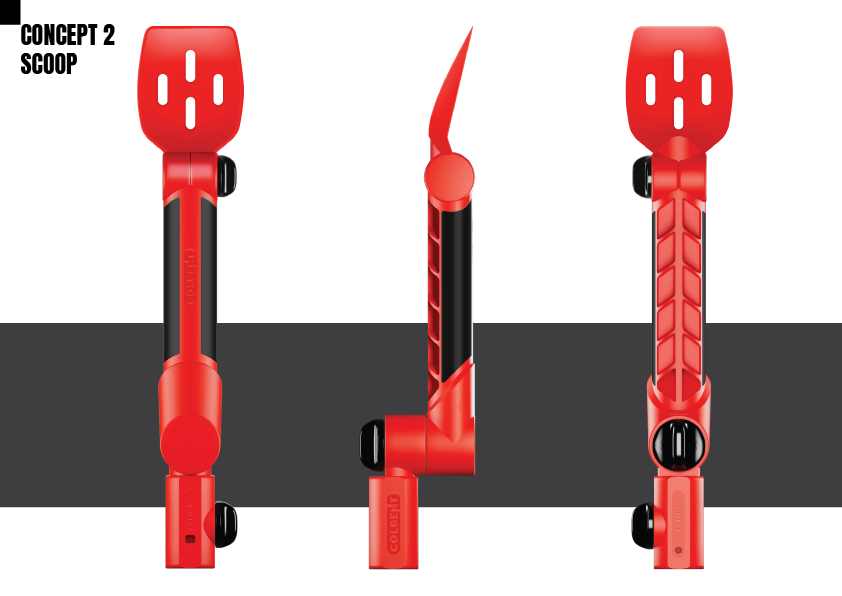 The goal was to design a functional, durable, and ergonomic tool that simplifies gutter cleaning. The challenge was creating a multi-functional, adjustable tool without sacrificing aesthetics or usability.
