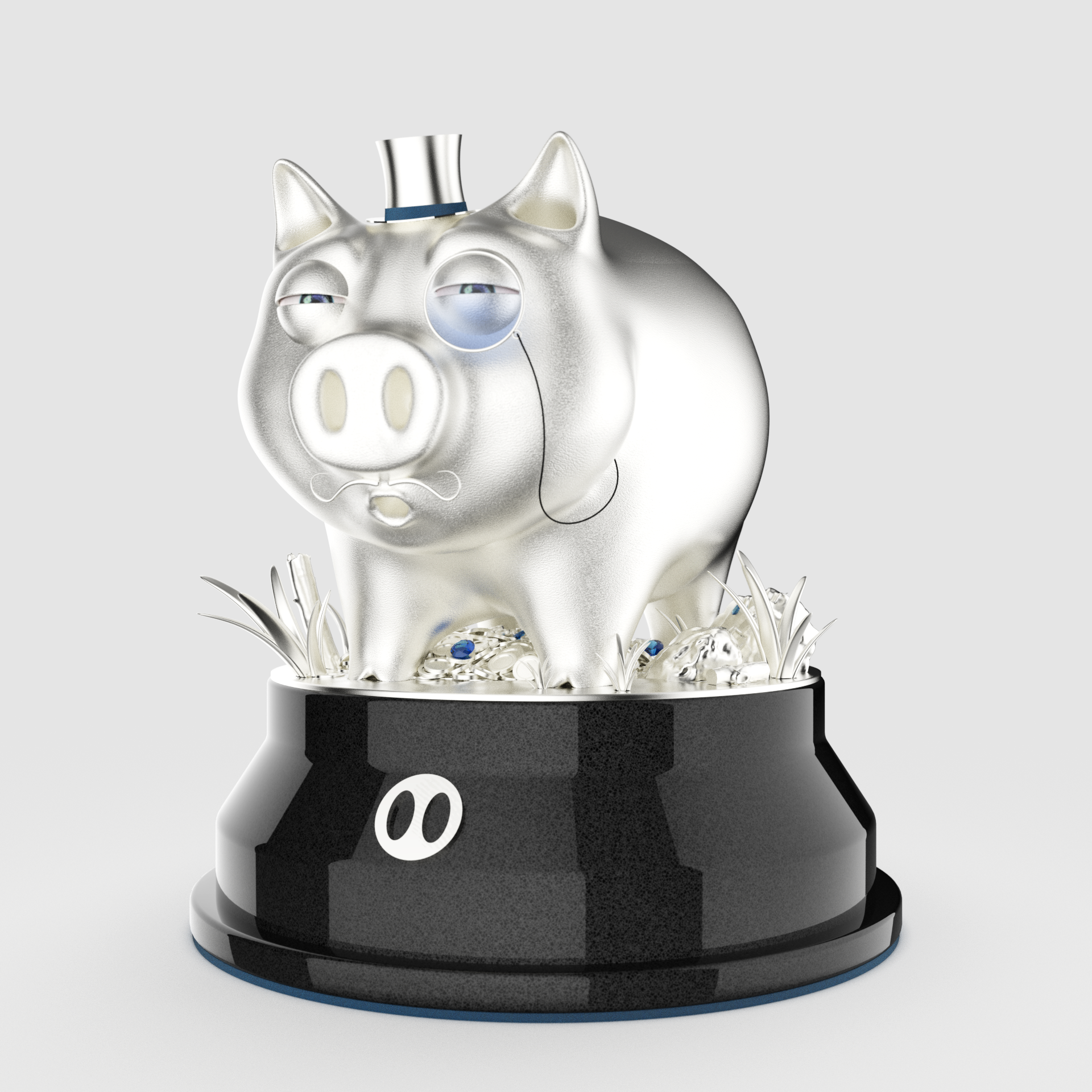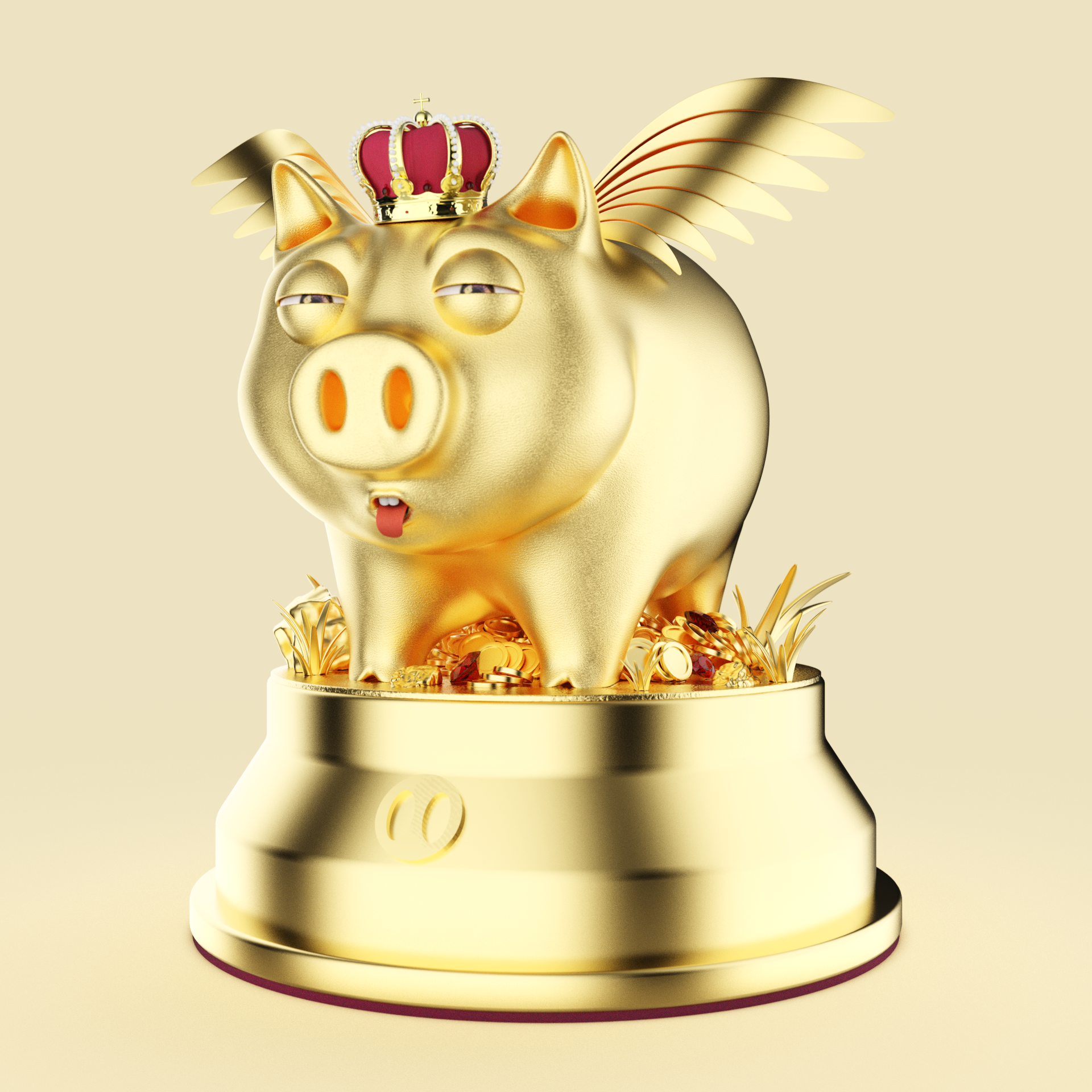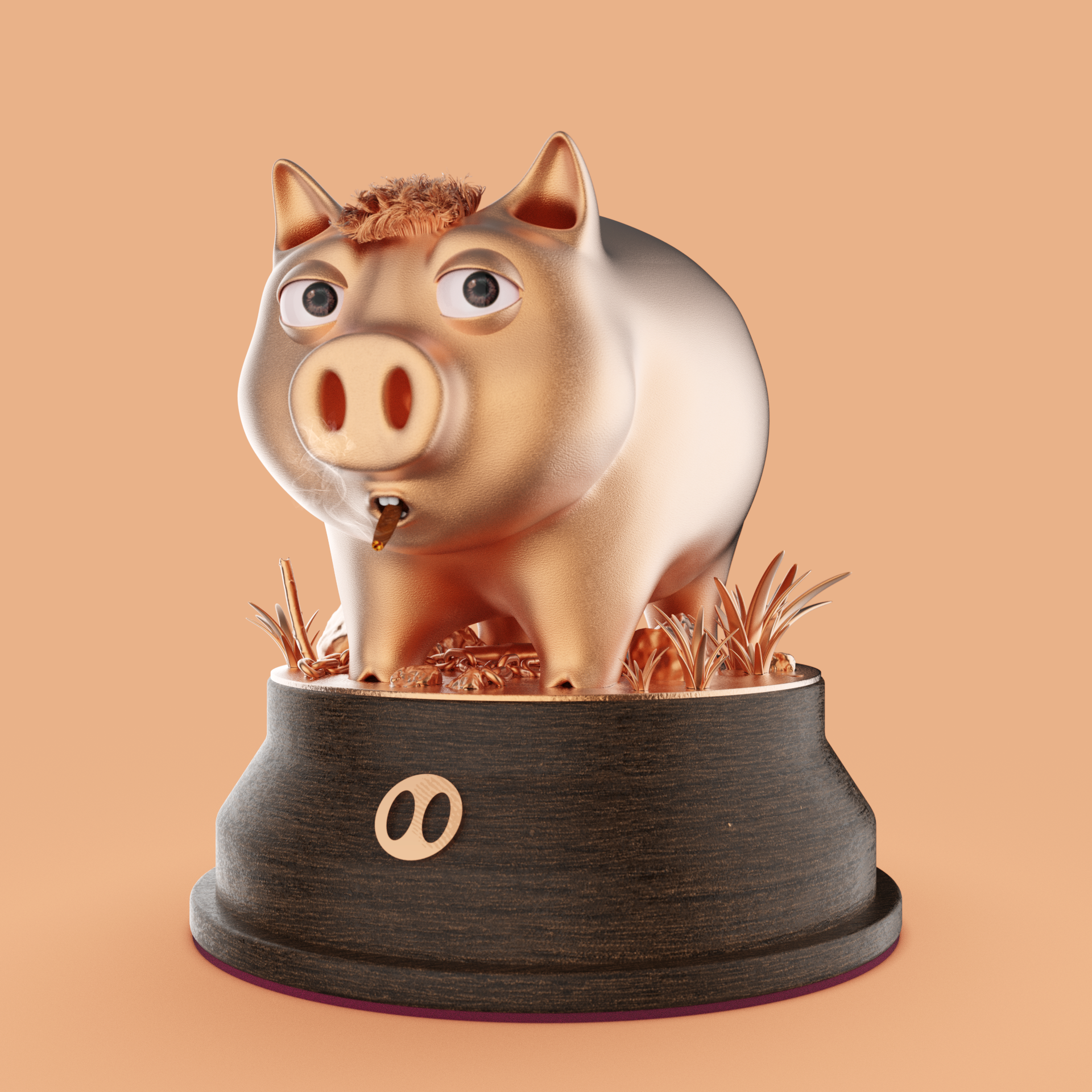 These are just a few of the 10.000+ original digital collectibles designed during the project. Once minted, the owners of these pigs would receive part of the P&E platform earnings.