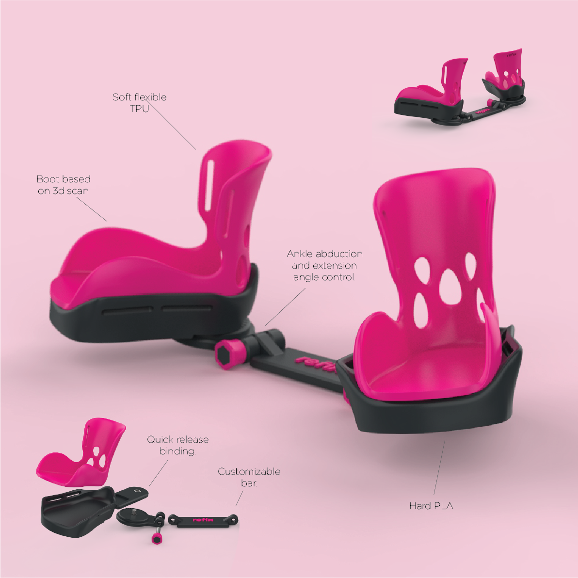 3d printed in soft and hard materials to ensure comfort and movement restraint aswell.